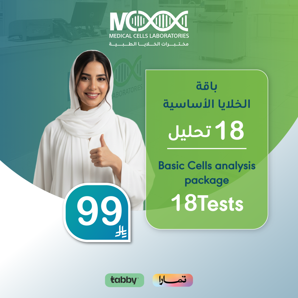 ابدأ رحلتك نحو صحة أفضل مع باقة الخلايا الأساسية، التي تضم مجموعة شاملة من 18 تحليل مخبري أساسي تساعدك على الاطمئنان على وظائف جسمك الحيوية واكتشاف أي اختلالات صحية في وقت مبكر.